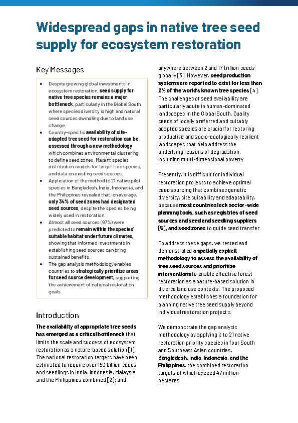 Policy Brief: Widespread gaps in native tree seed supply for ecosystem restoration