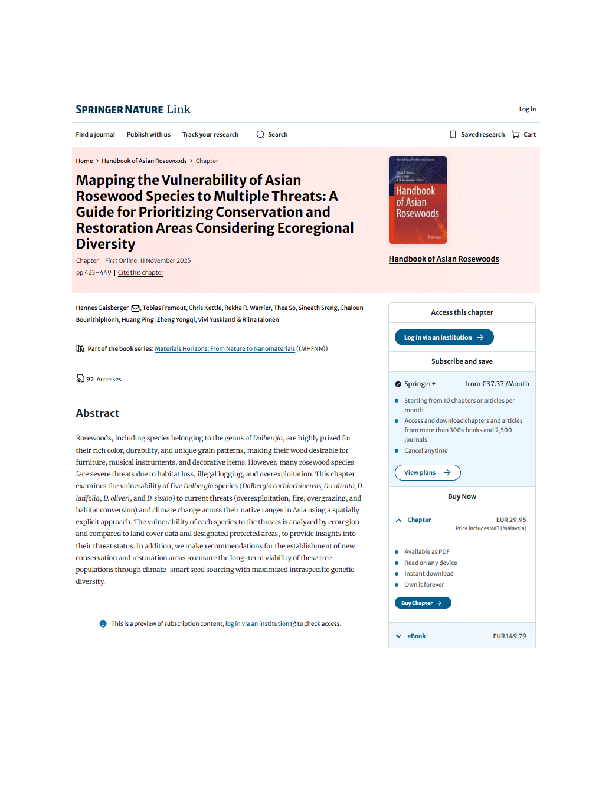 Book Chapter - Mapping the Vulnerability of Asian Rosewood Species to Multiple Threats: A Guide for Prioritizing Conservation and Restoration Areas Considering Ecoregional Diversity